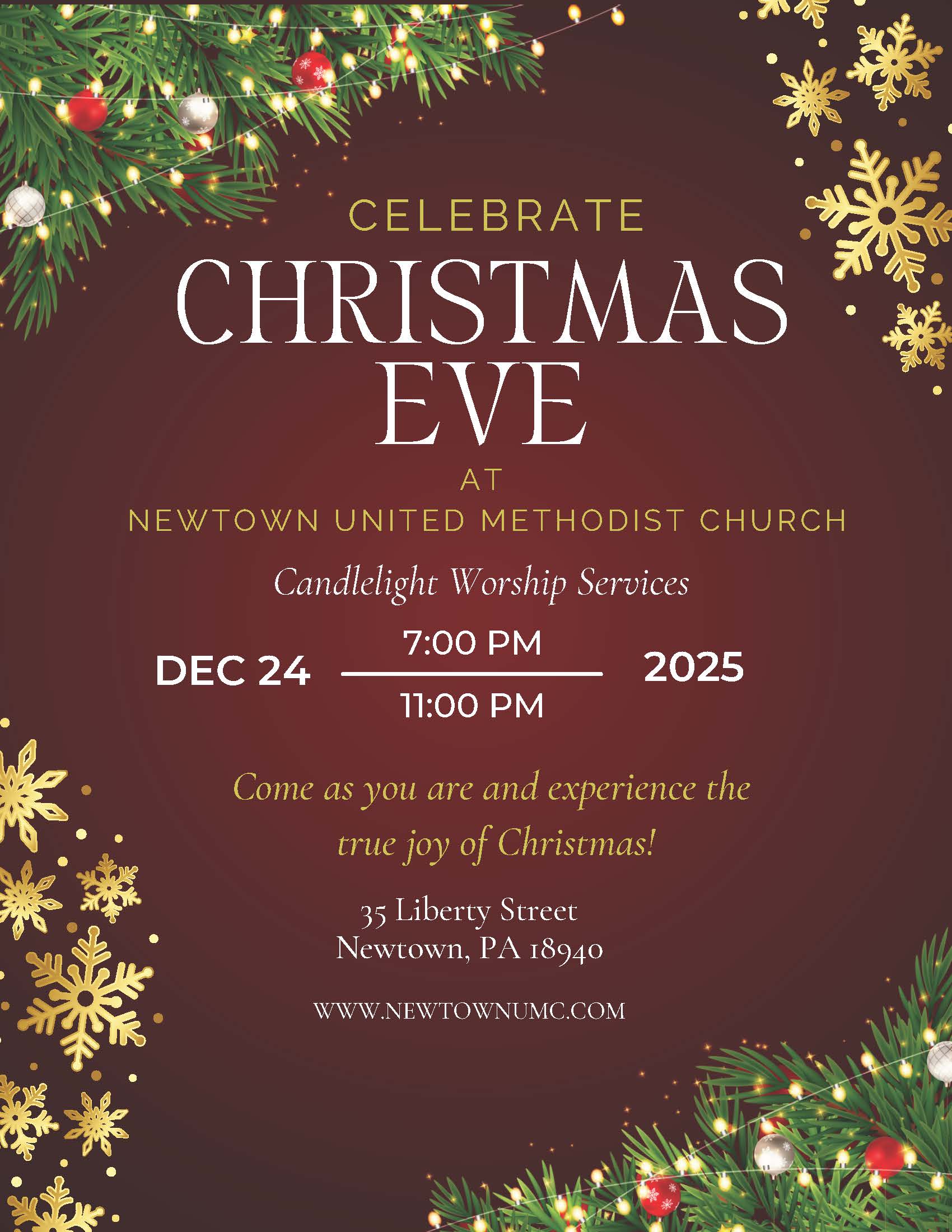 Come as you are and rediscover the hope, joy, and love of Christmas in this cherished Newtown tradition. Whether you attend the early or late service, you will leave with your heart aglow and your spirit renewed.