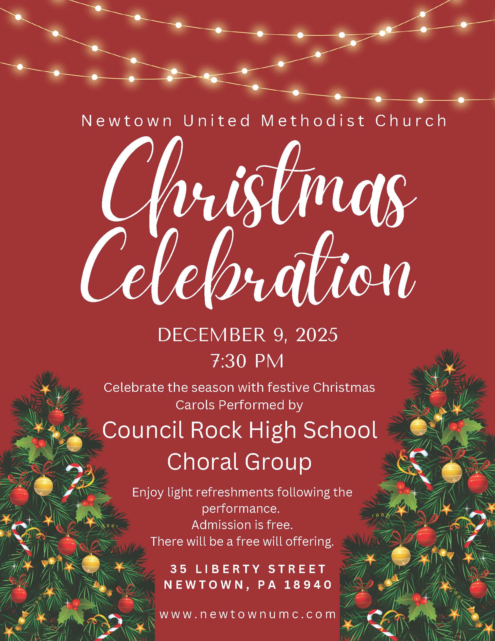 Join us for a joyful evening of festive music and community spirit! The Council Rock High School Choral Group will fill our sanctuary with the beautiful sounds of Christmas carols, celebrating the season with harmony, warmth, and hope.
